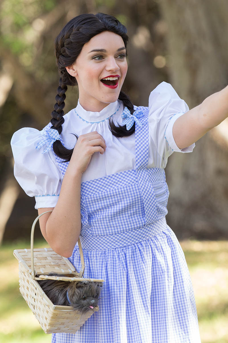 Our Dorothy party character is a sweet-singing, deep-thinking prairie girl from Kansas. She knows that there’s no place like home, but she loves to explore new places as part of the Party Princess Productions family. She’s one smart lady, and she knows how to use her heart, her head, and her courage to solve any problem. She may look like a simple country girl, but this great hero proves that a girl with a goal is a powerful thing. Bring a Dorothy party character to your party for an over-the-rainbow celebration!