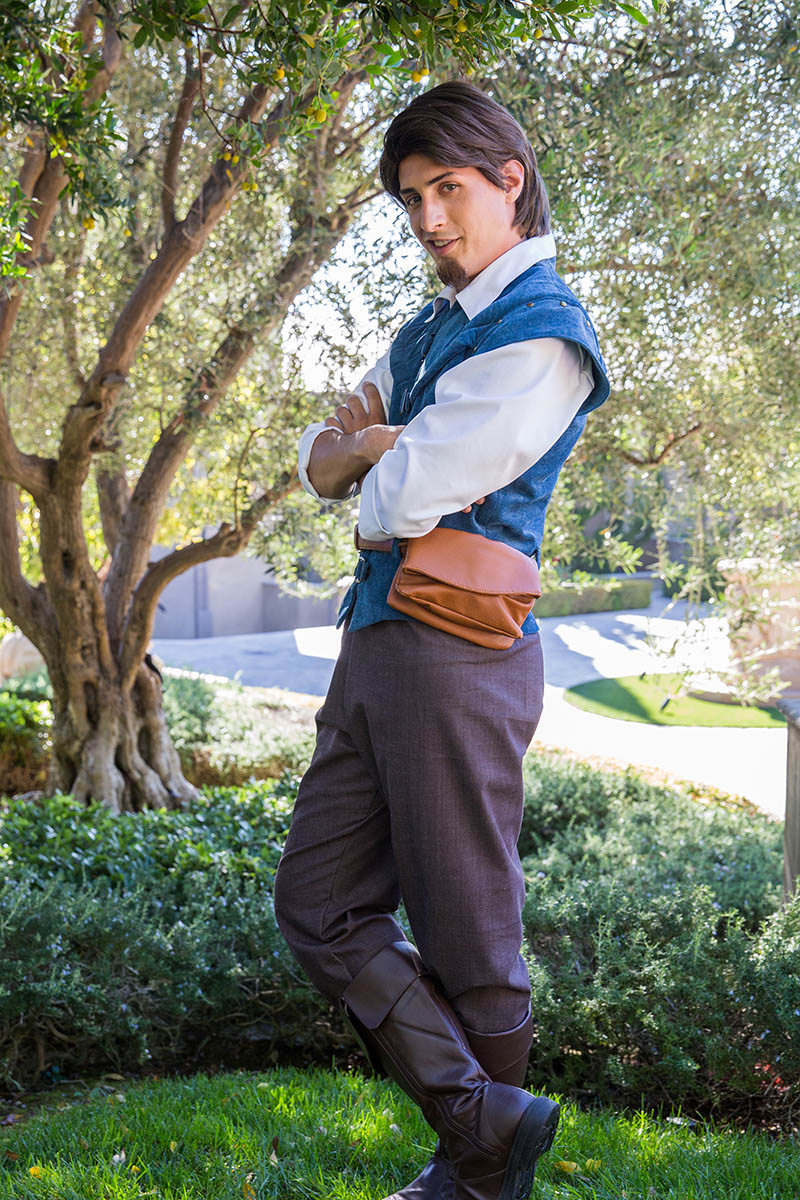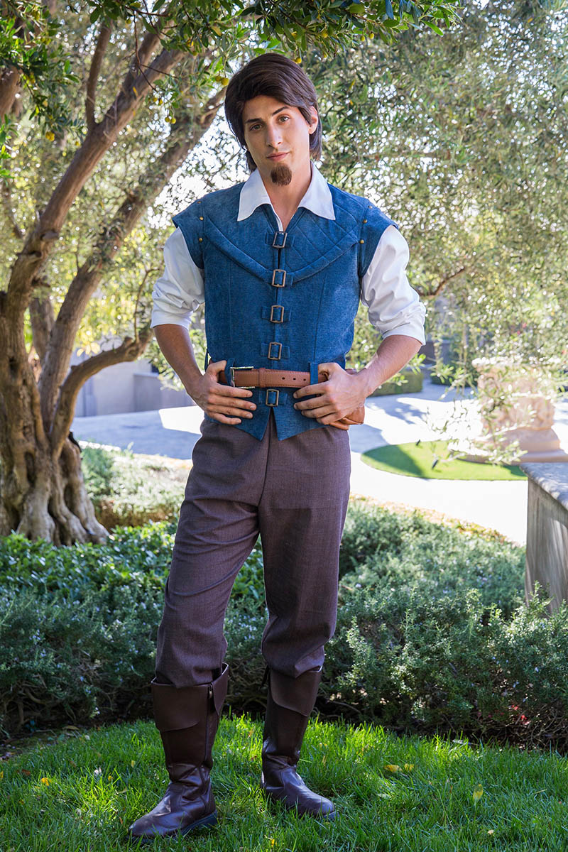 Flynn Rider (the character’s real name is Eugene Fitzherbert) is a fictional character. He is the prince of the dark kingdom. The character likes adventures, travels, storytelling, daily haircuts, camping, eating delicious foods and many other things. Flynn Rider also impresses with agility and athleticism. It’s also important to point out that the character has the desire for perfection and he wants to improve his life. He always dreams of having something more. He has fallen in love with the beautiful princess. Would you like to dig deeper into the character and his amazing adventures? If so, you can book our Flynn Rider Parody party character for your event!