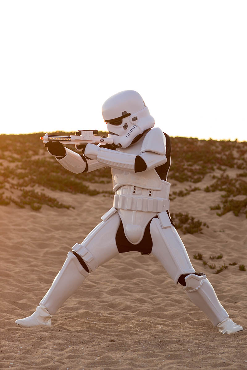 Storm Trooper is a brave and strong fighter loyal to his empire. The soldier fights fanatically for the ideology of the empire. Storm Trooper wears the armor that is designed to dissipate shots. That is the reason why the soldier manages to survive after serious injuries. The helmet provides the effective skull protection. Plus, the helmet contains communication systems, enhanced vision and heads up display that enables the soldier to spot threats and respond immediately. Our Storm Trooper parody party is a fearless warrior. There is no running from his wrath. This elite, white armored soldier is just the man you want protecting your party. Let us bring our Storm Trooper parody character to your party.